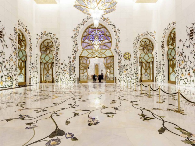The Sheikh Zayed Grand Mosque in Abu Dhabi is one of the largest mosques in the world featuring 82 domes, 24 carat gold plated chandeliers and more than 1000 columns. It is a prominent piece of architecture which shows how a building can become a work of art.